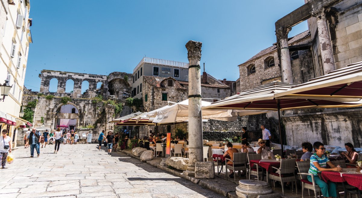 Split ist nach Zagreb die zweitgrösste Stadt Kroatiens. Im Herzen der Region Dalmatien, auf einer Halbinsel gelegen und umgeben von Gebirgen, erwartet den Besucher ein wahres Freilichtmuseum: prunkvolle mächtige Säulen, Plätze und Gebäude entführen in die Antike.